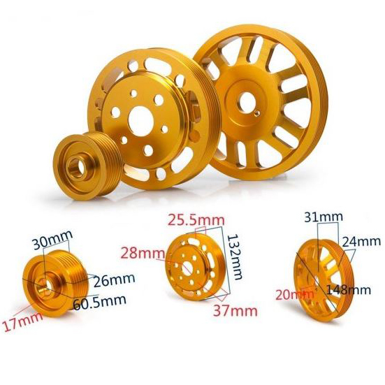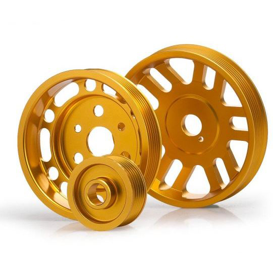 Шкив облегчен, сделан из Алюминия 6061-T6. Это обеспечивает лучший крутящий момент и экономию топлива. Уменьшает нагрузку на двигатель, что позволяет использовать максимум мощности на каждой передаче.