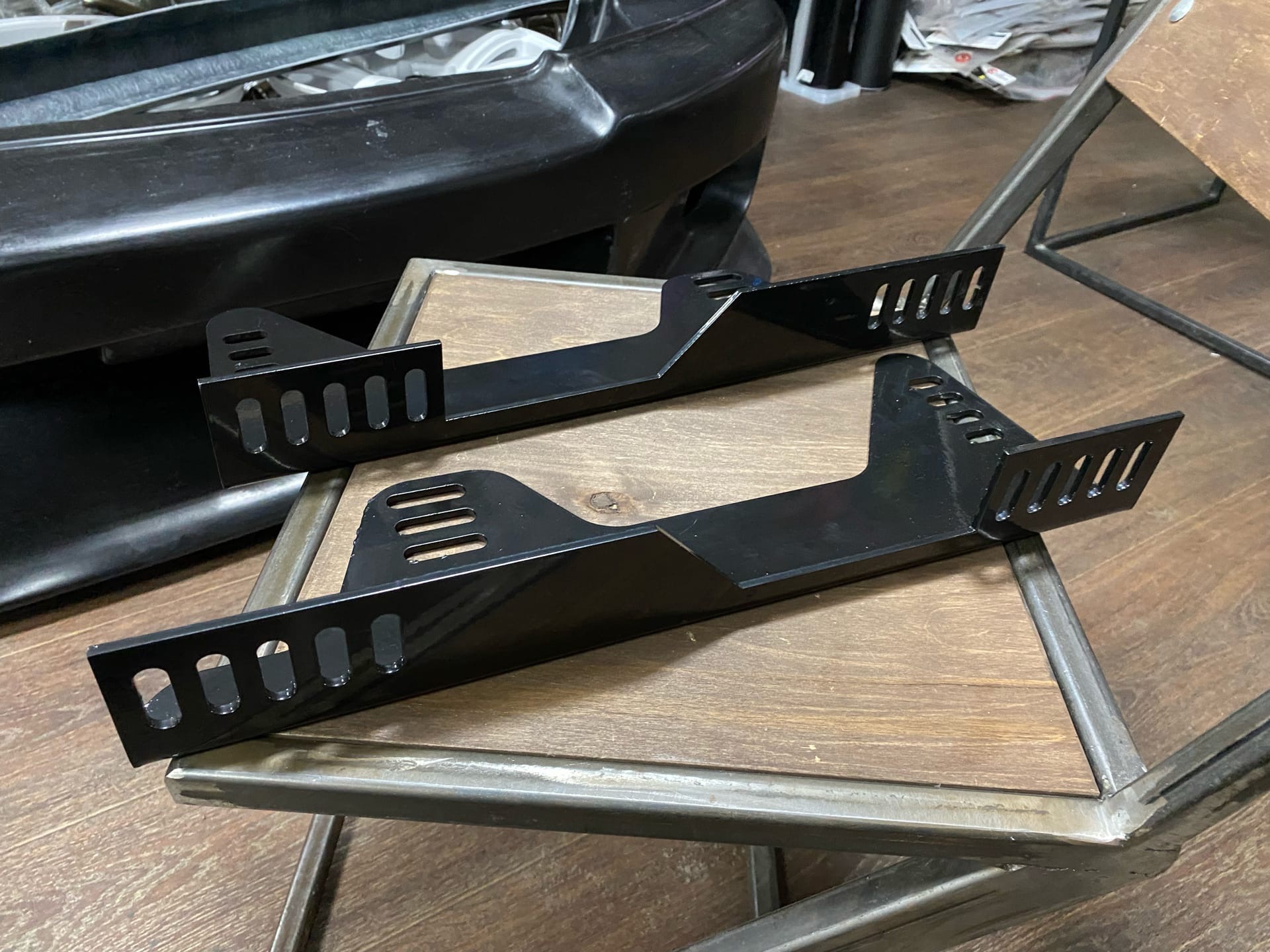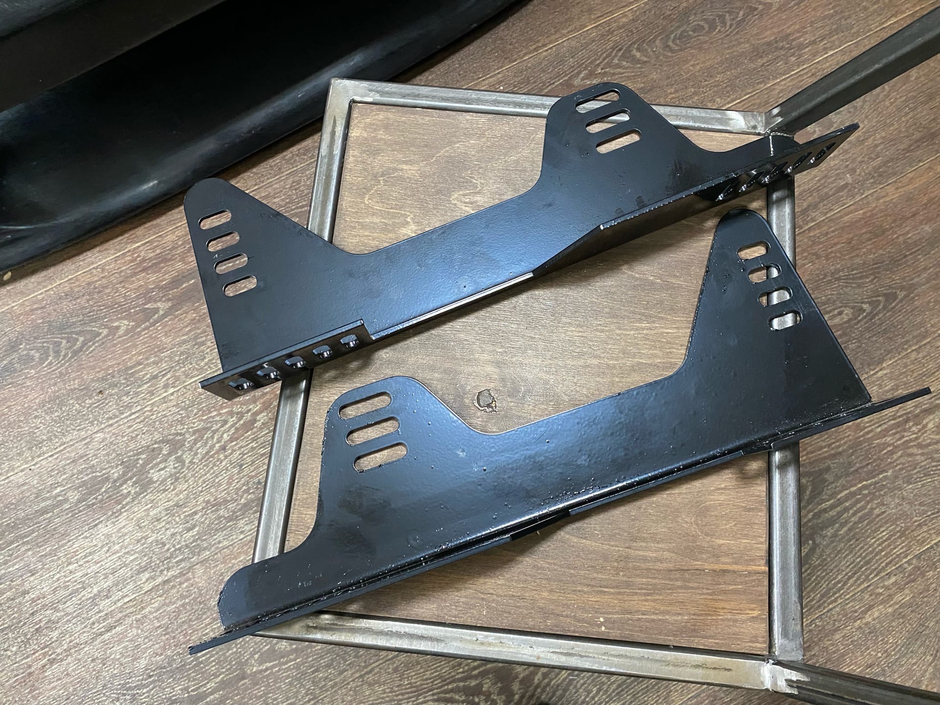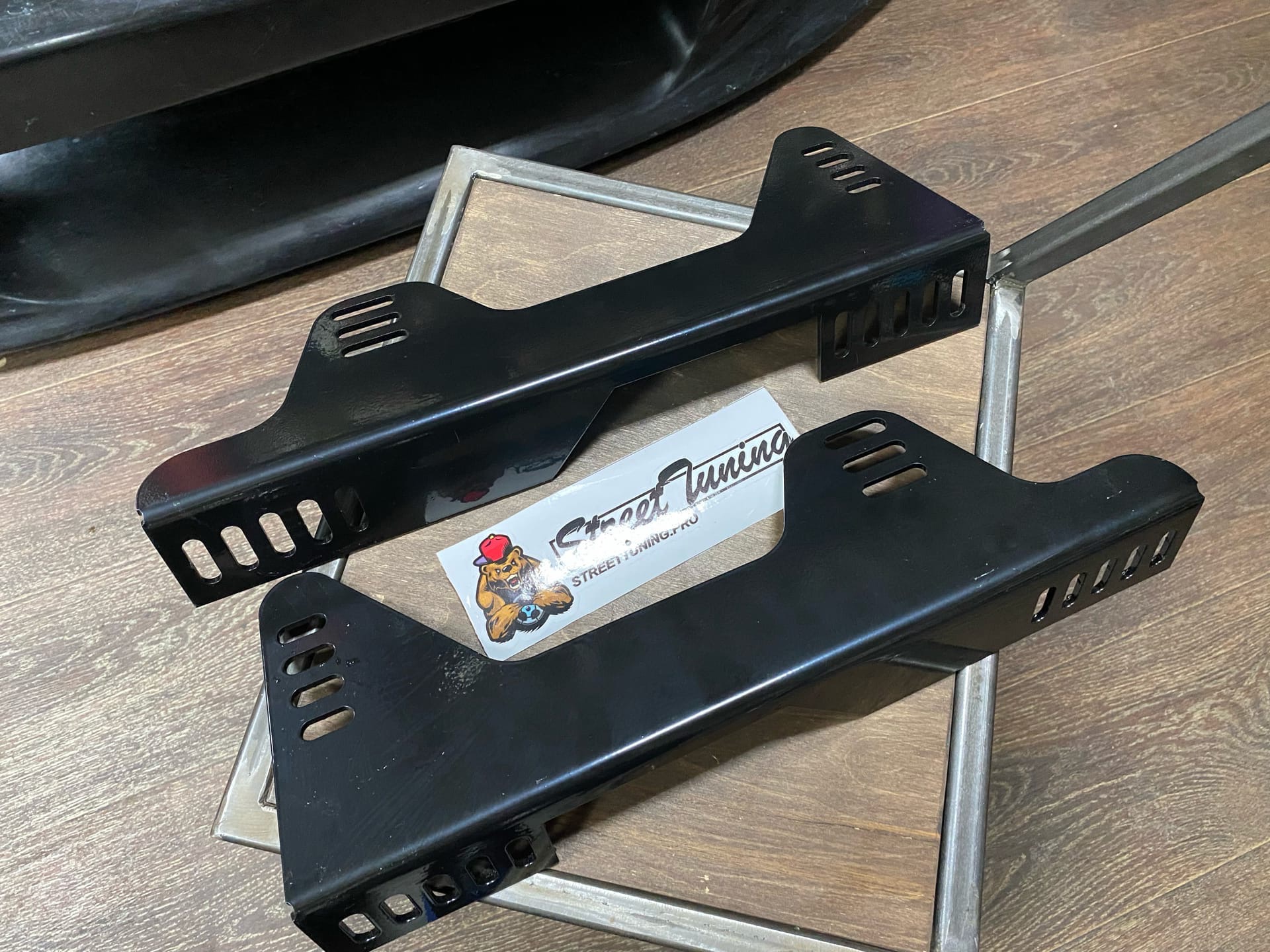 Комплект универсальных кронштейнов для крепления спортивного сиденья. Крепления изготовлены с большим количеством монтажных отверстий для более удобного выставления кресла для водителя или пассажира.