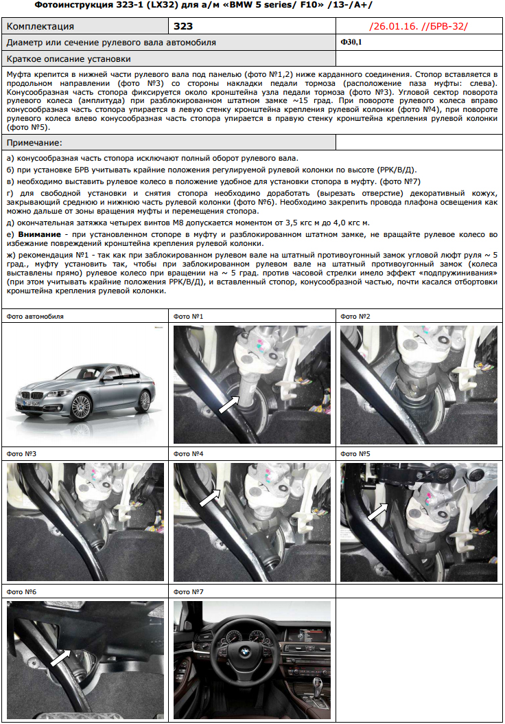 БЛОКИРАТОР РУЛЕВОГО ВАЛА ДЛЯ BMW 5 SERIES КУЗОВ F10 2013-н.в СЕДАН - ГАРАНТ БЛОК ЛЮКС