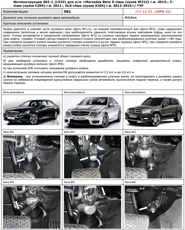 Блокираторы рулевого вала Гарант для MERCEDES BENZ E-CLASS КУЗОВ W212 2013-н.в ГУР- это семейство механических противоугонных устройств, блокирующих рулевой вал автомобиля.