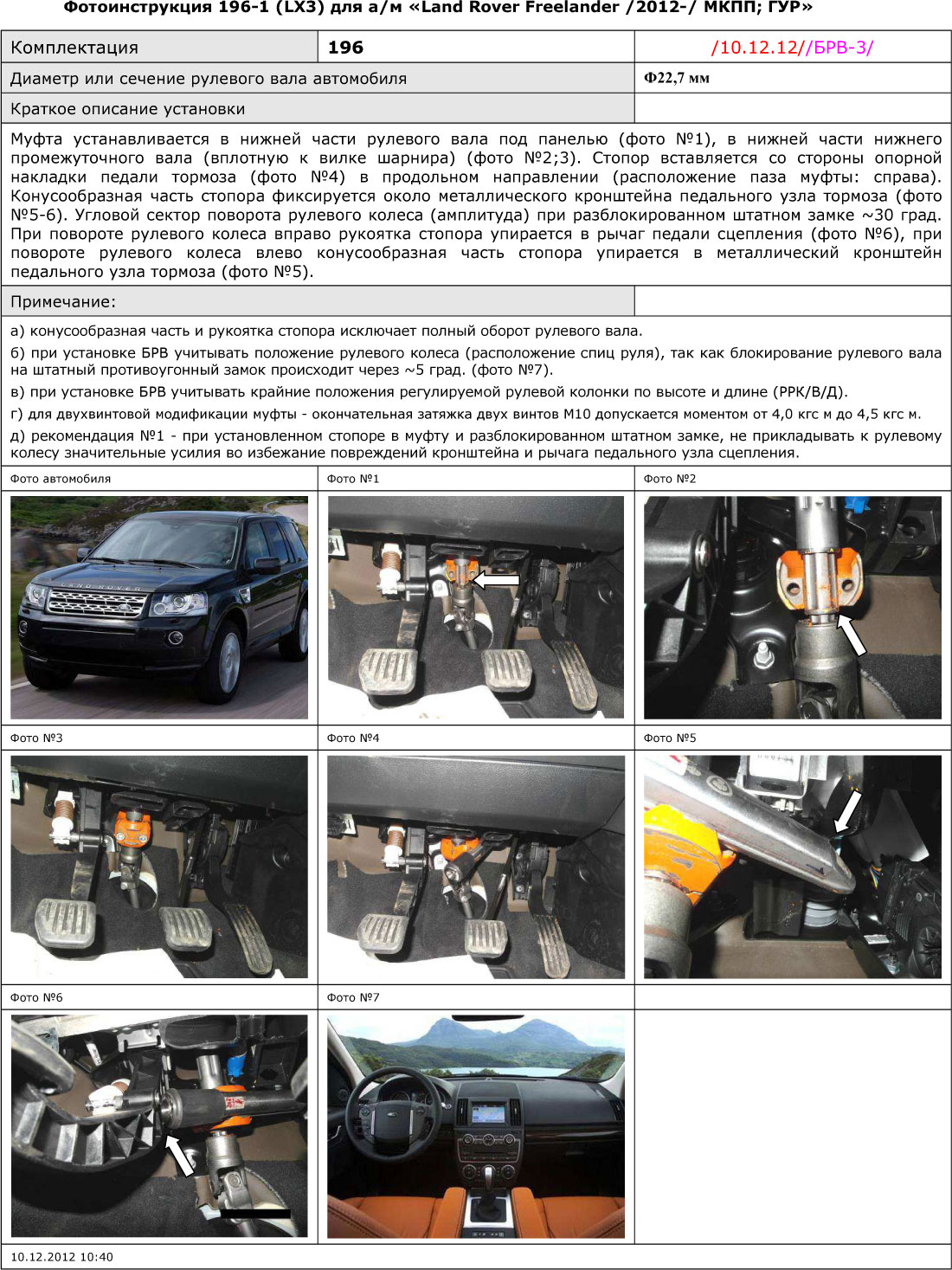 Блокираторы рулевого вала Гарант для LAND ROVER FREELANDER 2 2006-2014 ГУР- это семейство механических противоугонных устройств, блокирующих рулевой вал автомобиля.