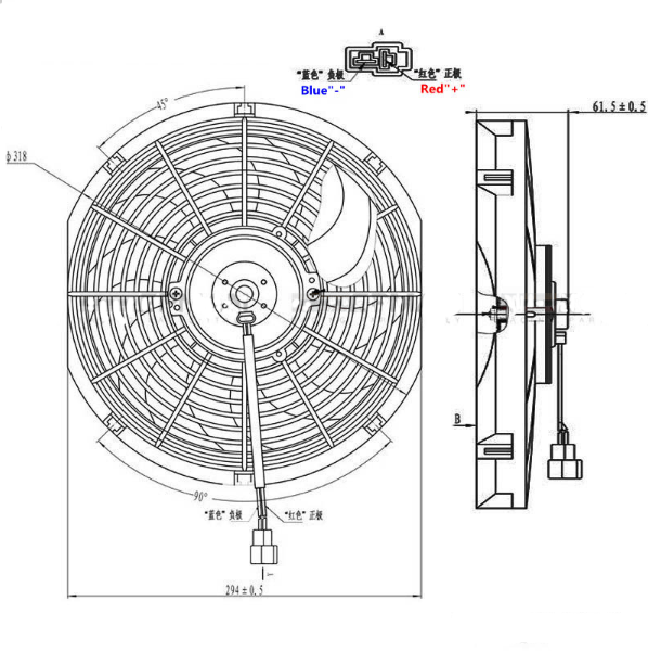 Вентилятор охлаждающий универсальный 12" 90W 318mm*295mm*62mm